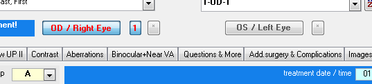 To enter the other eye's data click on the 'OS / Left Eye' button and proceed accordingly. The number next to the OS/OD buttons indicate the number of filed treatments. Every re-treatment is filed separately.