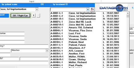 'Add New' and 'Delete' opens the create new patient dialog window or delete this treatment or patient if only one eye is left.