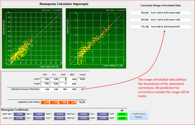 Nomogram calculations can be made, but only for treatments of spherical myopia.